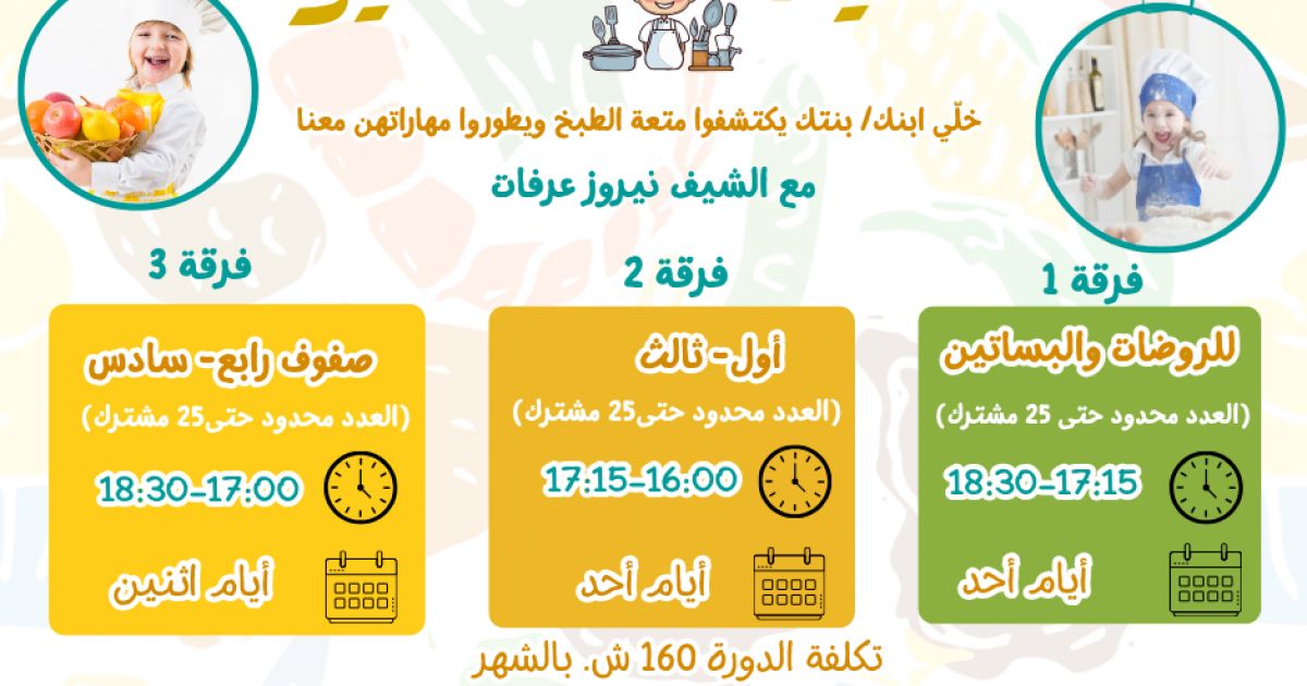 سجل ابنك/بنتك في دورة الشيف الصغير… مهارات يدوية، طبخ صحي، ومتعة بلا حدود!