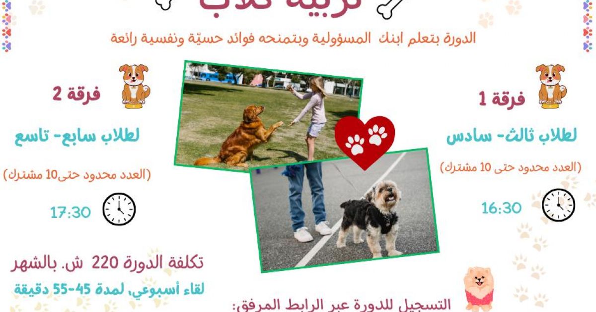 سجلوا اولادكم في دورة تدريب الكلاب… وتعلّم المسؤولية بطريقة ممتعة!