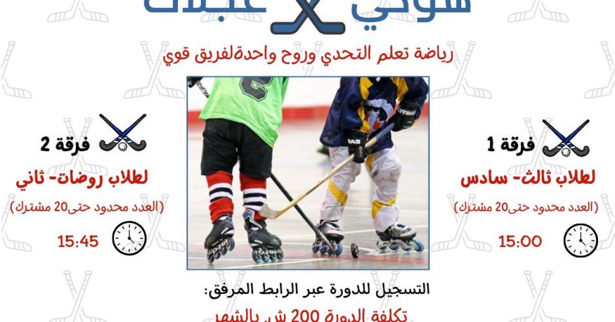سجل ابنك/بنتك في دورة هوكي العجلات… ثقة بالنفس، تركيز، وروح الفريق الواحد.