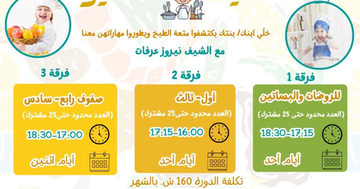 سجل ابنك/بنتك في دورة الشيف الصغير… مهارات يدوية، طبخ صحي، ومتعة بلا حدود!